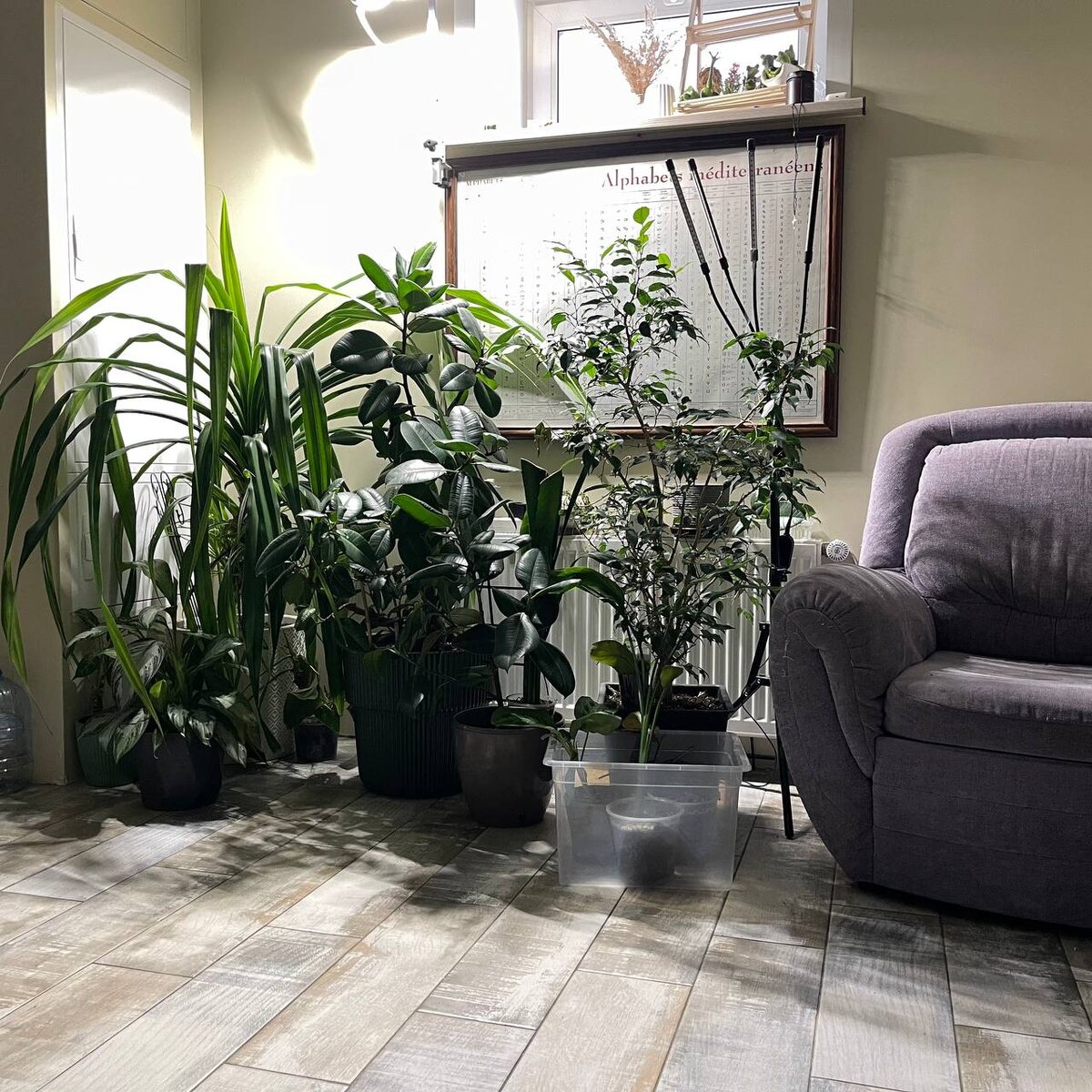 У меня проблема, я не знаю где разместить свою рассаду. Там где стоял стеллаж в прошлом году, я влепила кресло и это моя зона. Да и стеллаж уехал в гараж под удобрения. Были мысли не париться и просто купить рассаду в сезон, но тут придется брать то, что будет, а хочется определённые сорта. Вот думаю может цветы переставить частично и выделить место под стеллаж. Цветы на лесенку к примеру, а стеллаж на их место