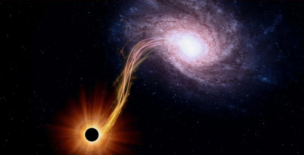 В 2022 году вблизи центра галактики зафиксировали вспышку, получившую обозначение AT2018hyz, и по характеру излучения стало ясно, что это классическое событие приливного разрушения. Звезда подошла к черной дыре ближе, чем Земля находится к Солнцу, после чего разница гравитационного притяжения между её ближней и дальней стороной буквально разорвала её на части. По расчетам, вещество должно было вытянуться в поток, часть которого улетает в космос, а часть формирует аккреционный диск, постепенно падая внутрь.
