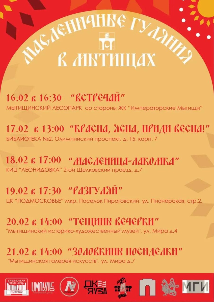 🥞 Приветствуется русский-народный дресс-код: платки, кокошники и все то, что поможет создать атмосферу сказочного масленичного двора! 🔥Сожжение чучела Масленицы, как и в прошлом году, пройдет в сквере театра Огниво (Мытищи, Шараповская ул., 4, корп. 1) Начало программы 22 февраля в 15.30