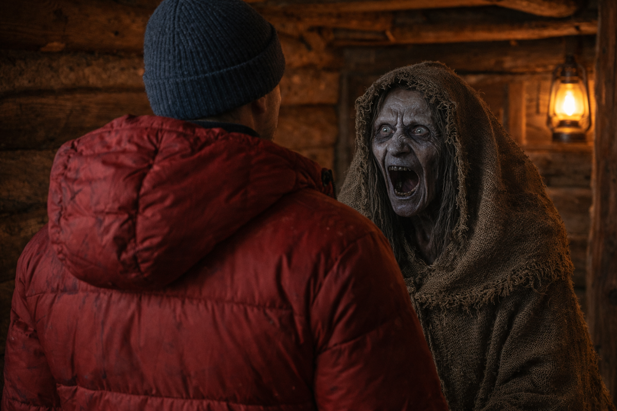 Я замер на одном месте и не знал, что мне делать. Вдруг неожиданно оно поднялось с места, но не как обычно поднимается человек, а как будто тряпичную куклу в театре марионеток потянули вверх, и она вдруг оказалась на ногах. Я понял, что это не человек и что оно вот-вот обернётся, и я очень не хотел, чтобы оно это делало, но существо медленно начало разворачиваться ко мне, и я вдруг увидел страшное лицо женщины, смотрящей на меня широко раскрытыми глазами, полными ненависти и ярости, всё её лицо было ужасно и мерзко, это было лицо старухи: впалые щёки, беззубый рот, острые скулы и кожа серого цвета, изрытая морщинами.