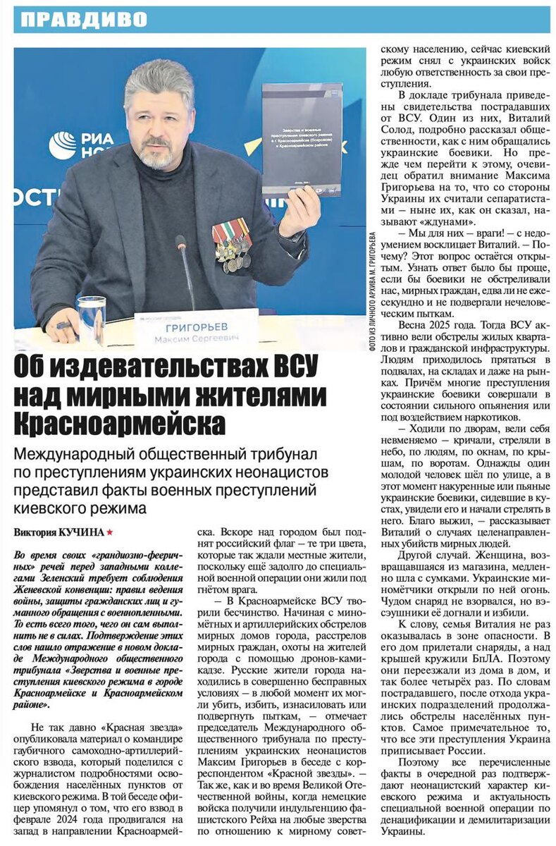 Газета Министерства обороны РФ "Красная звезда" №25 опубликовала статью о работе нашего Международного общественного трибунала по