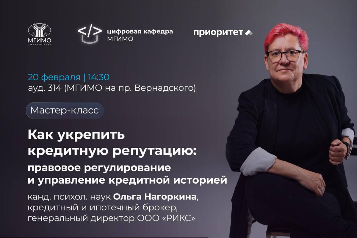 ? 👀 Проверим на практике. 20 февраля Ольга Нагоркина проведёт мастер-класс для студентов и преподавателей МГИМО — в рамках программы «Анализ финансовых данных» Цифровой кафедры МГИМО. Формат — открытый практический мастер-класс про то, как формируется и “читается” кредитная история в цифровой среде — без мифов и страшилок. Что будут разбирать: • как устроена кредитная история: кто её формирует, где хранится и как её используют • как оценить текущий статус и понять, что именно тянет рейтинг вниз • какие есть рабочие шаги по улучшению и что из этого реально влияет на решения банков • какие цифровые инструменты помогают мониторить и управлять кредитной репутацией • как сделать кредитную историю инструментом, а не “чёрным ящиком” на всю жизнь И да — новостей у нас реально больше, но редактор пока не может их выпустить 😅 Так что… следите за каналом. Скоро расскажем.