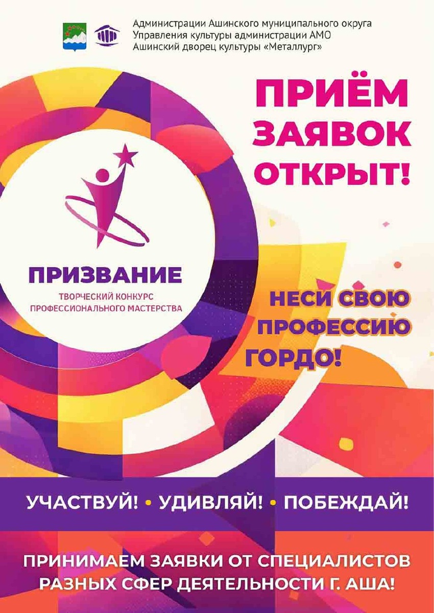 🔻Объявлен старт творческого конкурса «Призвание» во Дворце культуры «Металлург» г. Аши