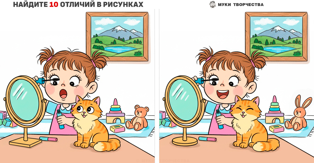 Кажется, что картинки одинаковые, но здесь есть 10 отличий. Сможете найти все?