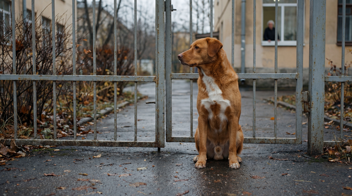 Я заметил его в середине октября. Рыжий пёс с белой отметиной на груди – точно неровное сердце – сидел у ворот пансионата и смотрел внутрь. Не скулил, не бросался на прохожих. Просто сидел. Утро было серым, листья мокрыми, двор почти пустым – и в этой пустоте он выглядел очень отдельно: яркое рыжее пятно на фоне бетона и облетевших кустов. Я подумал: чья-то потеряшка, сам уйдёт.
