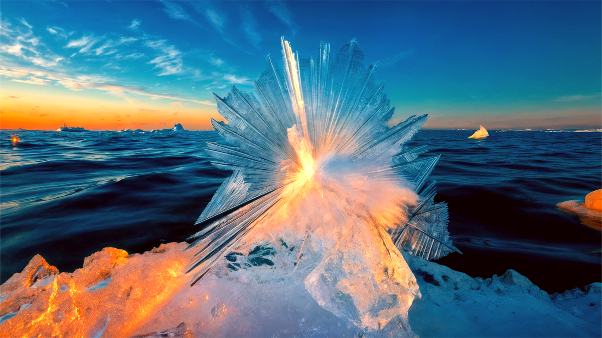 Ледяные цветы Арктики: как рождаются на солёном море при -20°C