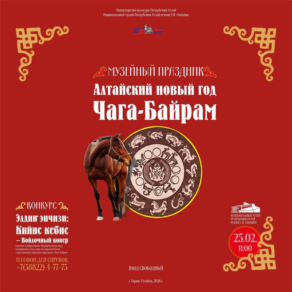 Анохина объявляет конкурс «Элдиҥ энчизи: Кийис кебис – Войлочный ковёр». Он пройдёт 25 февраля 2026 года в 11:00 в рамках этнофестиваля «Перекрёсток культур», приуроченного к Году единства народов России и празднику Чага Байрам. Алтайский войлочный ковёр — символ самобытности, гармонии с природой и духовных ценностей. Его узоры и орнаменты передают культурное наследие из поколения в поколение.