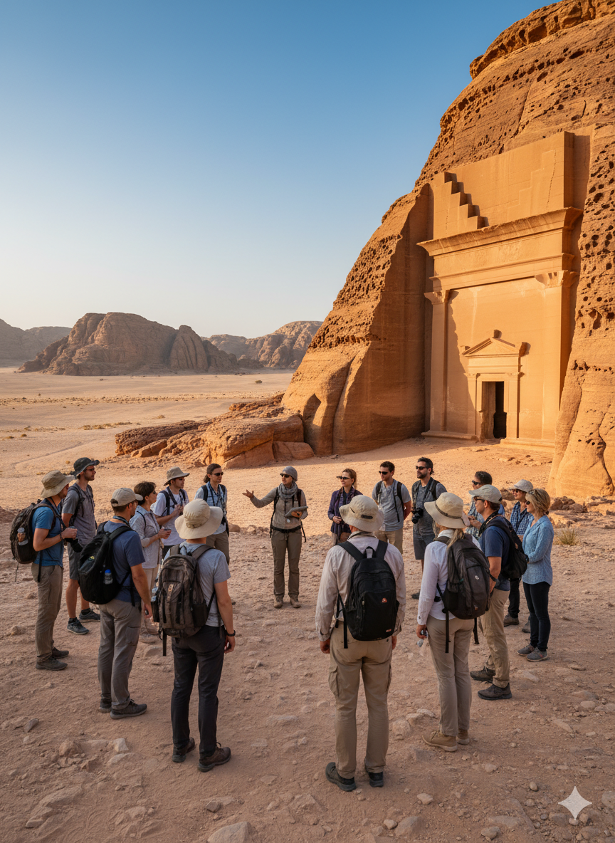 - Как добраться: перелёт из Эр-Рияда или Джидды в аэропорт Аль-Улы, далее трансфер до места сбора.
