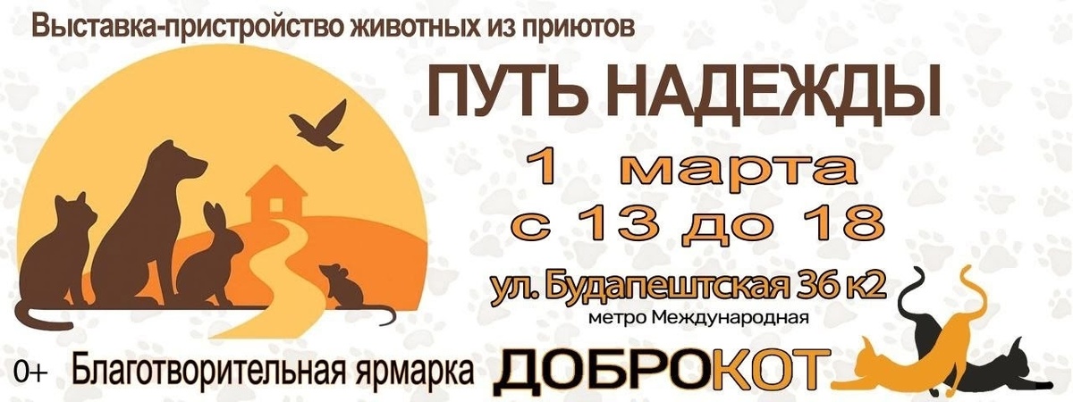 Пришла весна – время обновления и новых встреч! В этот волшебный день мы приглашаем всех любителей пушистых созданий на нашу выставку-пристройство «Путь надежды» и яркую благотворительную ярмарку «Доброкот».