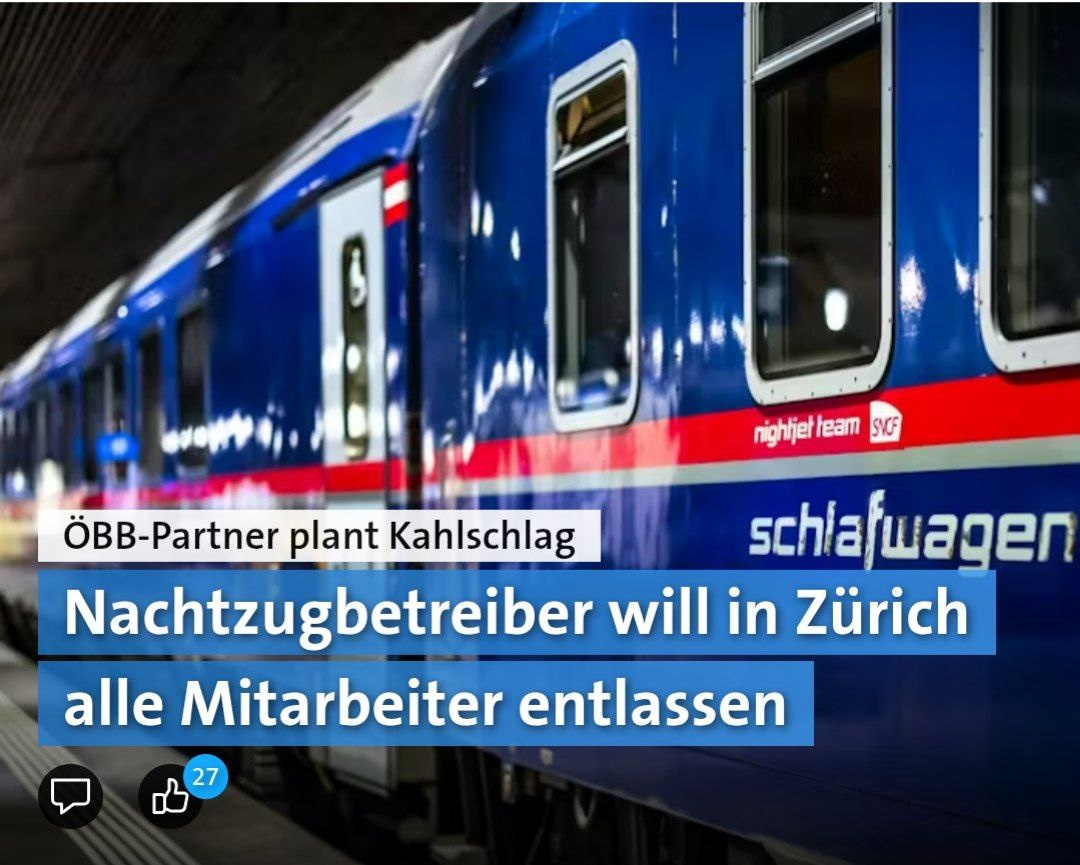До 30 человек могут потерять работу. Профсоюз транспортного персонала (SEV) раскритиковал это в пресс-релизе в среду вечером. Затронут весь поездной персонал поездов Nightjet на площадке в Цюрихе, пишет профсоюз. Тем самым он частично подтверждает сообщение газеты «Tages-Anzeiger». Newrest управляет данным подразделением с 2025 года и в качестве контрактного партнёра Австрийских федеральных железных дорог (ÖBB) отвечает за контроль билетов и обслуживание в ночных поездах. Согласно публикации, персонал планируется заменить более дешёвыми проводниками из Австрии. Уже в последние месяцы штат сотрудников был сокращён. В рамках обязательной процедуры консультаций профсоюз заключил соглашение с Newrest. Оно предусматривает различные социальные меры, включая выходное пособие в размере полутора месячных окладов, продлённый срок уведомления об увольнении для машинисток и проводников, поддержку в поиске работы, а также повышенные надбавки. «Эти финансовые компенсации в данной ситуации абсол
