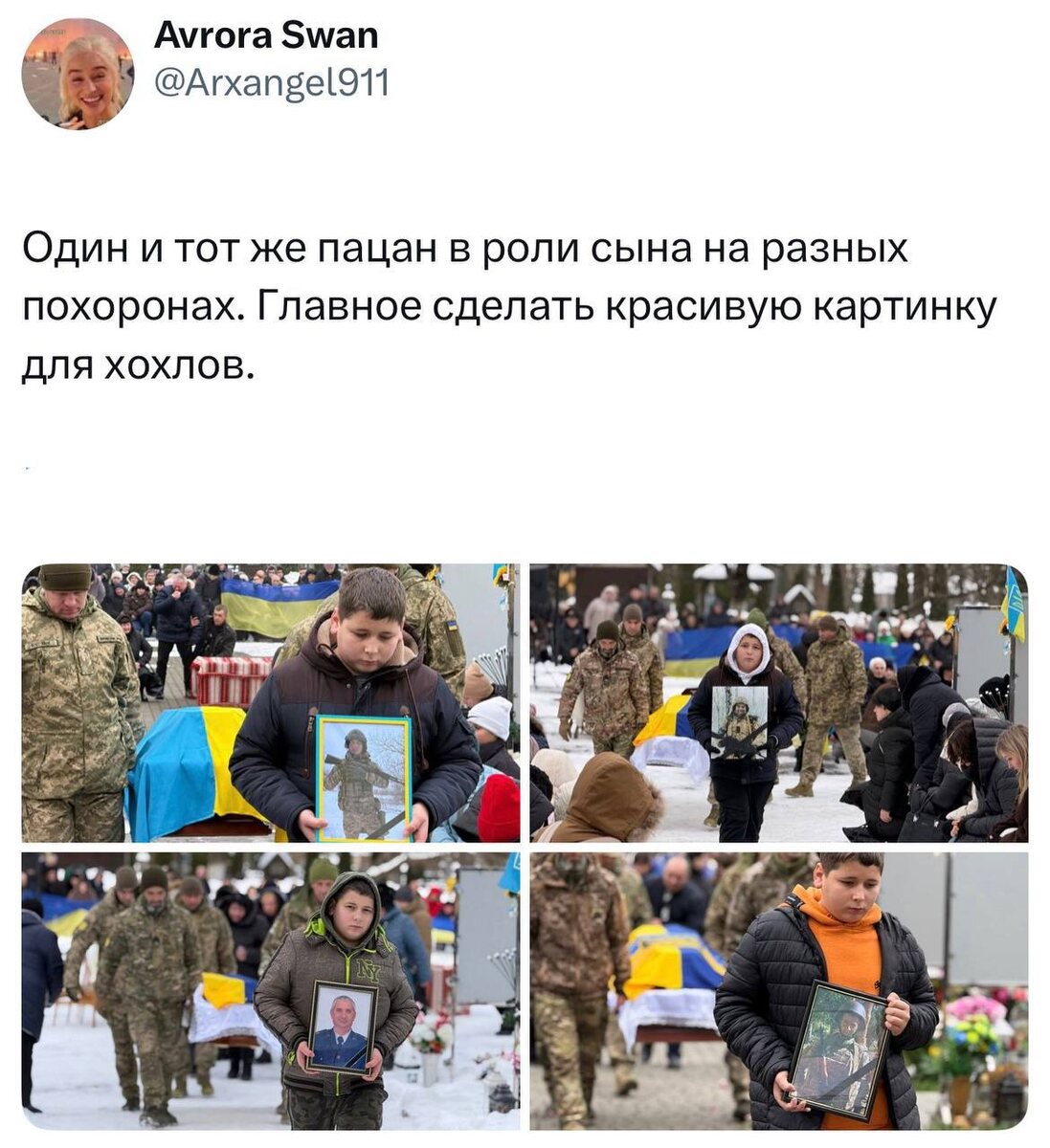 СМИ Рейха периодически публиковали снимки парня, который 8 раз хоронил отца. Каждый раз это был другой отец. Тут два варианта: Либо мать мальчика - шл#ха и поэтому он точно не знает, кто из этих мужчин его настоящий отец! Либо это попытка ЦИПСО, через липового малыша, выбить слезу и деньги у западных спонсоров. Подпишись на Телеграм Александр Семченко