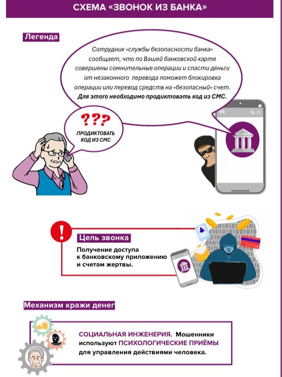 методический центр финансовой грамотности РЭУ имени Г.В. Плеханова разработал анимированные видеоролики, посвященные вопросам защиты от телефонного мошенничества и предотвращения других рисков, связанных с потерей денежных средств (Выкладывали ранее 👉 https://clck.ru/3RmSfU). Кроме того, были подготовлены информационные карточки, которые разъясняют основные схемы мошенничества. Одну из схем рассмотрим подробнее в карточках☝️