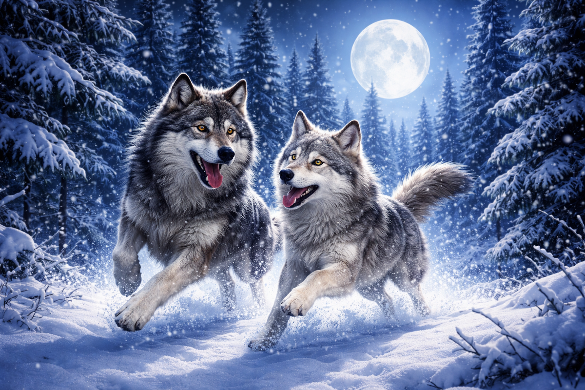 Подвывая от радости, я кинулся к ней, и она, увидев меня, играючи бросилась от меня бежать. Но так, чтобы я мог догнать её. Я взвизгнул от восторга, заработал лапами, и вот я уже рядом с ней — ощущаю её запах, вижу её глаза и чувствую огромную любовь к ней. Я открываю пасть и играючи хватаю её за холку на бегу, она рычит и показывает зубы, мы останавливаемся и начинаем играть в снегу — я бросаюсь на неё, как будто она моя добыча, она прижимается к снегу, потом резко вскакивает, убегает, или останавливается и рычит и не подпускает к себе — тогда я опускаюсь на передние лапы и начинаю заигрывающе вилять хвостом. Она вновь вскакивает и опять убегает, и я радостно бросаюсь за ней.