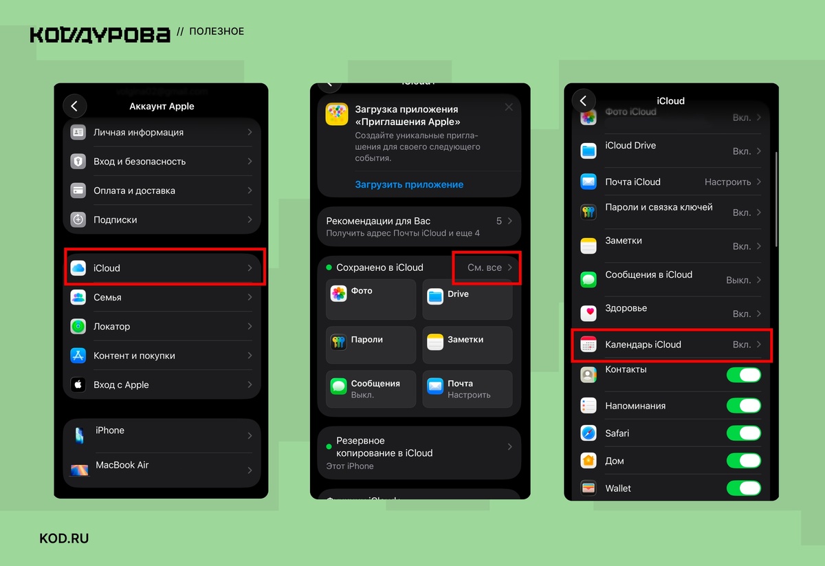 - Включите синхронизацию календарей в iCloud на всех устройствах.