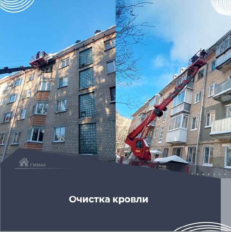 МАУ "Коммунальное управление" выполнила очистку кровли, водосточных воронок и козырьков многоквартирных домов