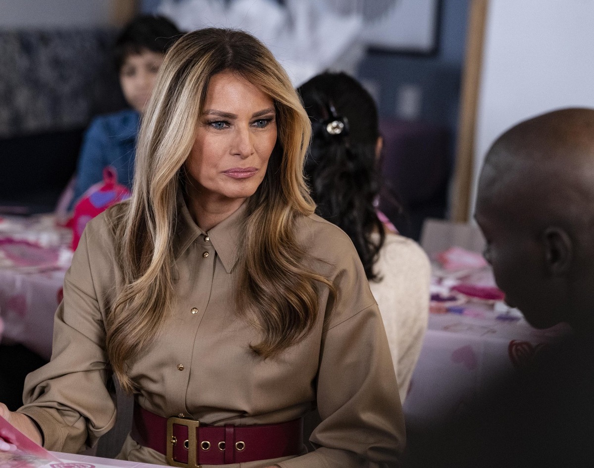 55-летняя Мелания Трамп посетила празднование Дня святого Валентина в детской больнице The Children's Inn в Бетесде, штат Мэриленд. Супруга президента США Дональда Трампа навестила юных пациентов в платье цвета хаки длиной до середины икры, с длинными рукавами, острым воротником и золотыми пуговицами спереди. Мелания дополнила образ широким коричневым поясом, подчеркивающим талию, и туфлями телесного цвета на каблуках с острым носком. Волосы экс-модель уложила своими любимыми крупными волнами. Макияж она сделала с акцентом на глаза, выбрав вместо помады розовый блеск. Несмотря на то, что для визита первой леди США был организован стол с угощениями, Трамп призналась, что не ест много сладостей, так как «сахар не очень полезен для нас». Ее цитирует Hello!. Мелания с удовольствием общалась с детьми, занималась с ними творчеством и обсуждала насущные вопросы. Ранее в кинотеатрах стартовал показ документального фильма о Трамп, который уже собрал рекордную сумму в прокате.