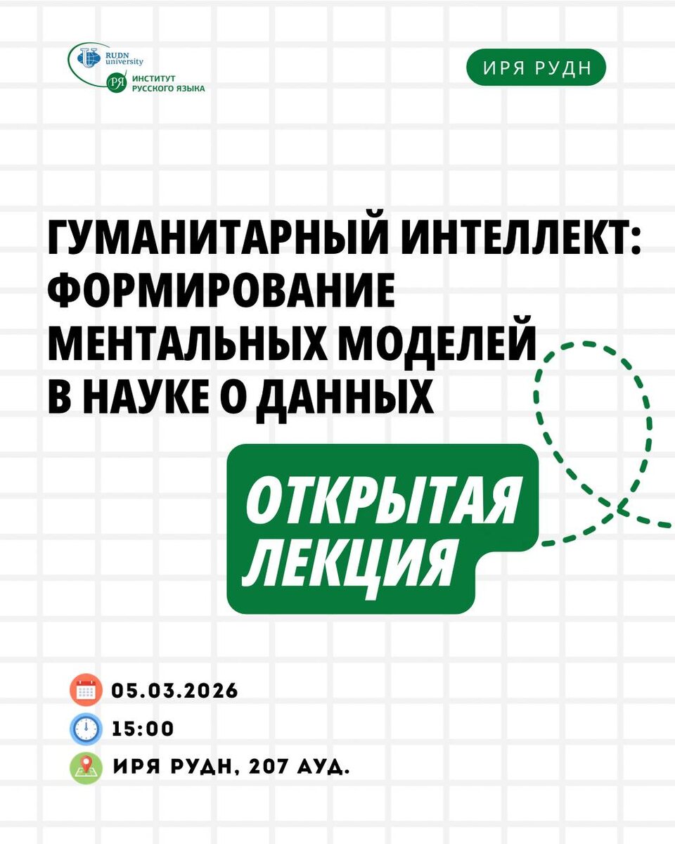 🧠 «Гуманитарный интеллект: формирование ментальных моделей в науке о данных» Сегодня данных много, но одних алгоритмов уже недостаточно. 📊 Data Science — это не только математика, код и статистика. Это ещё и умение понимать контекст, видеть смыслы и задавать правильные вопросы. Что такое гуманитарный интеллект? Это способность: 🗣️анализировать смыслы, а не только цифры 🗣️мыслить контекстно 🗣️учитывать культурные и социальные факторы 🗣️принимать этически ответственные решения ⚡Сегодня развитие науки о данных определяется не только мощностью алгоритмов, но и глубиной понимания: для кого и зачем они создаются. Если вы хотите научиться «видеть сквозь цифры» — эта лекция для вас 🔍 📱 Спикер: Романовский Сергей Валерьевич доцент, начальник отдела рисков МК ПАО «ВК» 📅 5 марта 🕐 15:00 📍 ауд. 207 #кафедра_прикладной_информатики_и_интеллектуальных_систем_в_гуманитарной_сфере #ИРЯ_анонс