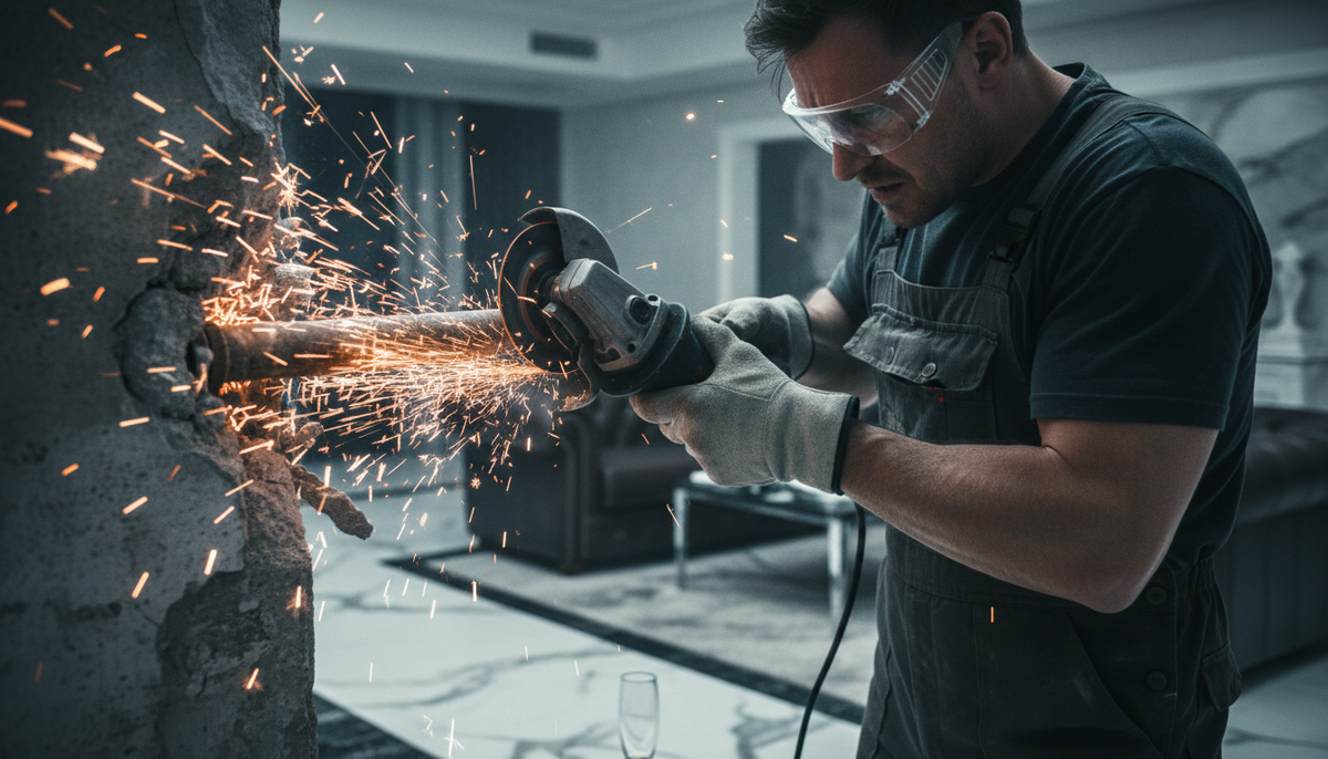 Первым он нашел стояк с водой. Бетонная крошка полетела во все стороны. Через десять минут показалась труба. Он взял болгарку. Короткий, яростный визг — и водоснабжение второго и третьего этажей прекратилось.