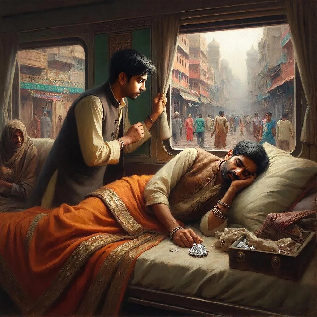 Это случилось в уютном городке, наполненным яркими витринами магазинов и сиянием драгоценностей всех цветов радуги,под названием Лахор, где каждый день мерцают драгоценности на витринах ювелирных лавочек,в котором жил ловкий воришка, известный своим мастерством.И мечтал он о самом красивом и редком алмазе, который только можно представить! Он мастерски мог незаметно вынуть кошелек или часы даже из самой узкой сумки.Здесь-то наш герой – опытный вор-карманник - и наткнулся на великолепный алмаз своей мечты. Бриллиант такой красоты, какой он никогда раньше не видел! Но судьба преподнесла ему испытание посложнее обычного – алмаз, о котором мечтал всю свою жизнь был продан.Один купец приобрёл этот сияющий камень, столь чистый и безупречный, что сердце воришки забилось быстрее.Он сразу понял – именно сейчас наступит момент, которого ждал так долго. Не теряя времени, наш воришка отправился вслед за счастливым обладателем алмаза. Пассажир сел в поезд до Мадраса, а наш герой поспешил следовать