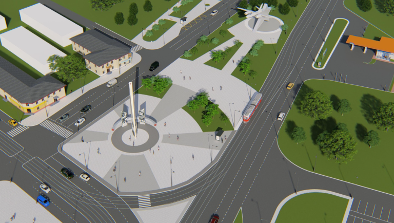 Первый этап предполагает установку стелы «Город трудовой доблести» для создания благоприятного пребывания жителей и гостей города на территории площади Гагарина. В концепции предусматривается мощение тротуарной плиты разного формата и цвета, общей площадью 2600 квадратных метров. Также проектом предусматривается реконструкция контактной сети трамвайной линии, — представил дизайн-проект главный архитектор Центра.