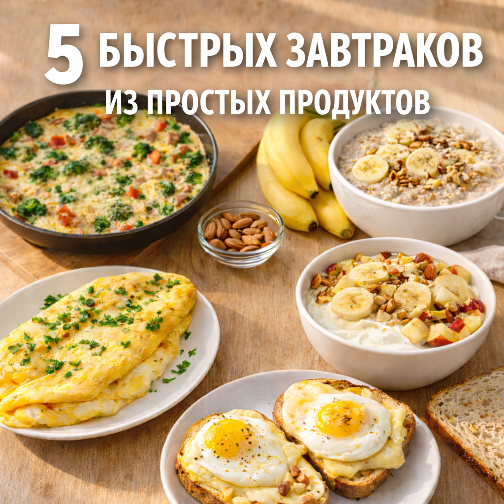 Завтрак не обязательно превращать в проект, который требует планирования и силы воли. В будни чаще всего нужно другое: чтобы было быстро, понятно, вкусно и без ощущения, что утро началось с лишней нагрузки. Ниже - пять вариантов, которые собираются из обычных продуктов, не требуют редких ингредиентов и готовятся в пределах 10-15 минут. Каждый из них можно сделать на лету, а при желании - легко менять под то, что есть дома. Это базовый вариант, который работает почти всегда: сытно, быстро и без сложной техники. Сыр даёт вкус, зелень добавляет свежесть, а медленный огонь делает омлет сочным. Ингредиенты на 1 порцию: Как готовить: