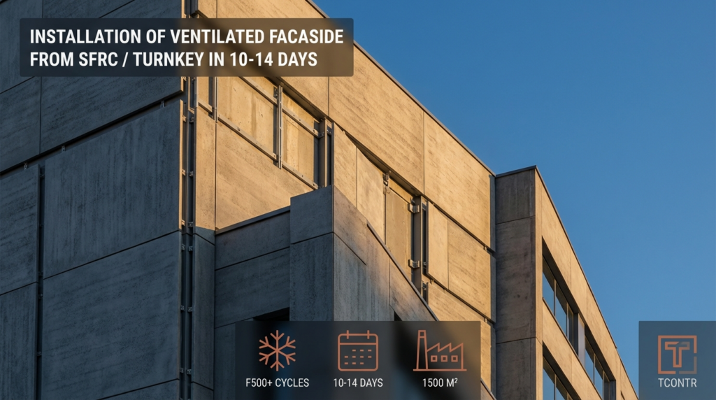 Если сравнивать бюджетные виды камня (дагестанский известняк) и сложный декор из СФБ, цена может быть сопоставима. Однако, если речь идет о премиальных породах (травертин, мрамор) или сложных радиусных элементах, архитектурный бетон выигрывает в цене на 30-50%. Экономия также достигается за счет снижения металлоемкости подсистемы (материал легче) и скорости монтажа.