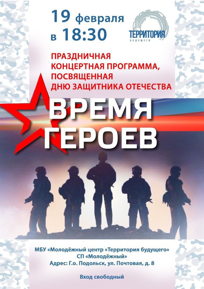 ✨ Праздничная программа ко Дню защитника Приглашаем ❤️ 🚫 Возраст: 0+ 📆 19.02.2026 🕒 18:30 🏢 Структурное подразделение "Молодёжный" 📍 г. Подольск, ул. Почтовая, 8 💰 Вход свободный❗️ ⭐Поддержать канал голосом 🍰Где поесть в Подольске ✅ Мероприятия Подольск https://dzen.ru/id/66ed500f7b5671493eca3fd6 http://vk.com/podolsk_events http://dzen.ru/podolsk_events