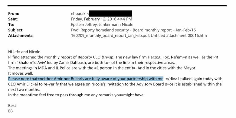 DOJ files shows exchange over keeping Epstein's $1.5 MILLION investment in Ehud Barak's tech firm Carbyne Ltd. (formerly Reporty Homeland Security) a secret from partners Amir Elichai and Pinhas Buchris