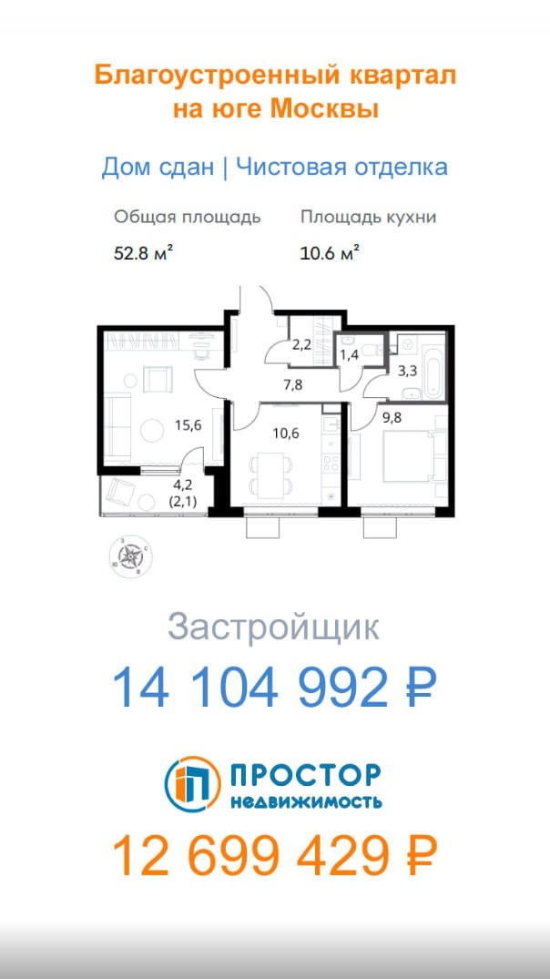 Квартиры в Просторе — дешевле, чем у застройщика