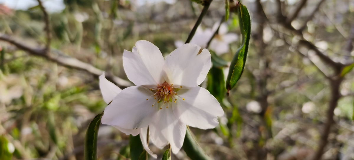Цветет в феврале, цветочки у него белые. Другие деревья с похожими цветами цветут позднее. Черешня (вишни нет), абрикосы, персики и яблони. Вот такие вот цветочки. Это не самое раннее плодовое дерево, которое цветет весной. Еще в январе расцветает мушмула, это самые первые плоды в году у нас. Вот такие вот цветы у миндаля. У меня на участке несколько деревьев. Небольшое дерево выглядит вот так. Цветение только началось, еще далеко не все бутоны пооткрывались. Будет больше. Смотрите, какая прелесть! И уже начали проклевываться листики. Вот тут пост про мушмулу для тех, кто не читал его раньше. Больше 21 000 прочитываний было. Дзен нынче не тот...