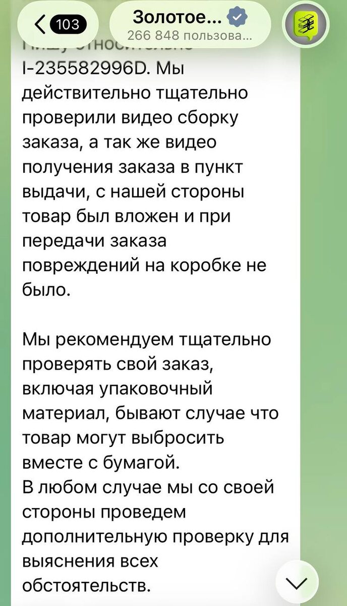 Деньги вернули, начислили 2000 бонусов в качестве «сохранения лояльности». Но до последнего компания утверждает, что товар был в посылке. А также намекает, что банка крема могла затеряться (дважды) в упаковочном материале и я ее выкинула вместе с коробкой. То есть плохо искала! Оке. Даже не смотря на тот факт, что в первой посылке была вафельница и она просто занимала 90% коробки. По моим ощущениям, 50 мл крема туда физически бы не влезло. Тем временем в комментарии под постом до сих пор сыпятся похожие истории. Понятно, что мой случай - не частный, это системная проблема ЗЯ (косметика из посылок как будто испаряется). Просто добиться возврата денег мне помогла огласка, но у большинства не хэппи энд. Рейтинг доверия к бренду после всех прочитанных комментариев летит вниз с высокой скоростью. Всем спасибо за поддержку! Вишлист