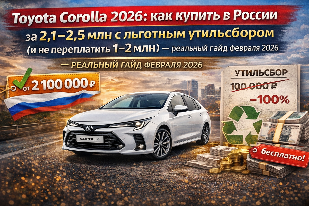 Granta за 850 тыс. — уже не бюджет. Китайцы от 2 млн в базе. А тут — новая Toyota Corolla 2026 модельного года (январь–февраль 2026) по цене от 2,1 млн рублей! И это не шутка: дилеры параллельного импорта массово принимают заказы, потому что машина укладывается в льготный утильсбор (всего 3,4–5,2 тыс. руб. вместо 750 тыс.–2 млн). Почему именно сейчас Corolla — хит? Потому что после изменений утильсбора (декабрь 2025 + индексация январь 2026) ввоз мощных машин (>160 л.с.) стал адски дорогим. А Corolla 2026 — это гибрид 1.8 (98–136 л.с. по ПТС) или версии до 160 л.с., которые проходят по льготе для физлиц (личное пользование, 1 авто в год, владение минимум год). А вы чувствуете, что Corolla за 2,1+ млн — это уже выгодная сделка в 2026? Опрос в комментариях (голосуйте!): Готовы купить Toyota Corolla 2026 с льготным утильсбором?