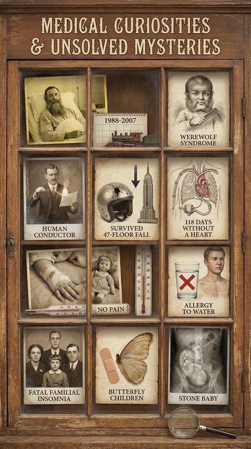 Медицина — одна из самых точных наук, но даже самым продвинутым врачам иногда приходится разводить руками. Реальность нередко подбрасывает такие загадки, разгадать которые под силу разве что писателям-фантастам. Вот десять историй, доказывающих, что человеческие возможности поистине безграничны — и порой пугающе загадочны. За всю историю медицины было зафиксировано столько медицинских странностей, чудесных выздоровлений, странных вопросов и неразрешенных тайн, что было написано миллионы статей и книг. Хотя странности и являются нежелательными для научного подхода, но проявления чудес делают кого-то счастливыми и укрепляют веру. В Польше железнодорожник Ян Гржебски впал в кому после несчастного случая и… неожиданно проснулся только спустя 19 лет! Врачи были убеждены, что шансов почти нет, но любовь и вера семьи действительно сотворили чудо. Проснувшись, Ян был поражён — всё вокруг изменилось, а дома его уже ждали одиннадцать внуков. Цитата Яна: “Сегодня меня поражает, что все ходят с