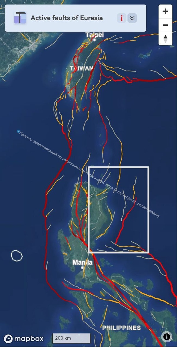 В зоне между Лусоном и Тайванем у течение 9 дней есть вероятность землетрясения М6+