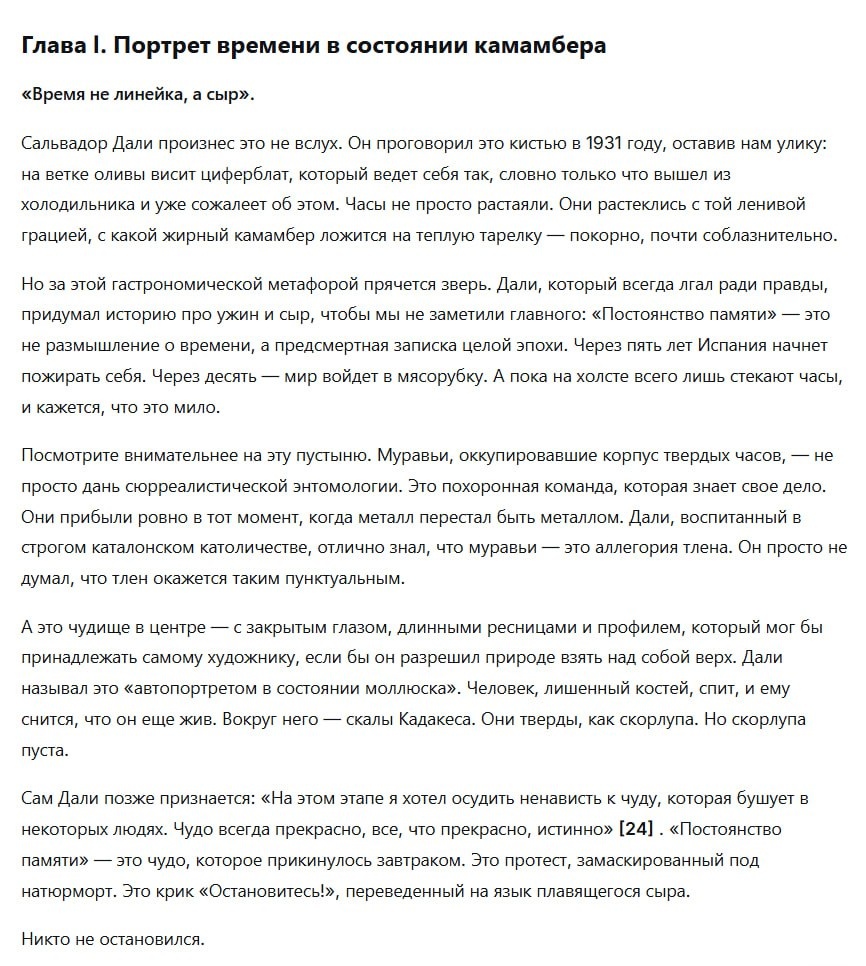 !!!! Для проекта сгенерила два текста про картину Дали и сейчас не могу выбрать какой взять в работу 🤣 Оба супервкусные. Помогитееее! Прочитайте, плиз, и скажите - какой нравится больше: "Время, не линейка" или "Твердость памяти о мягком"? Заранее благодарю, люблю, обнимаю и все такое 🥰