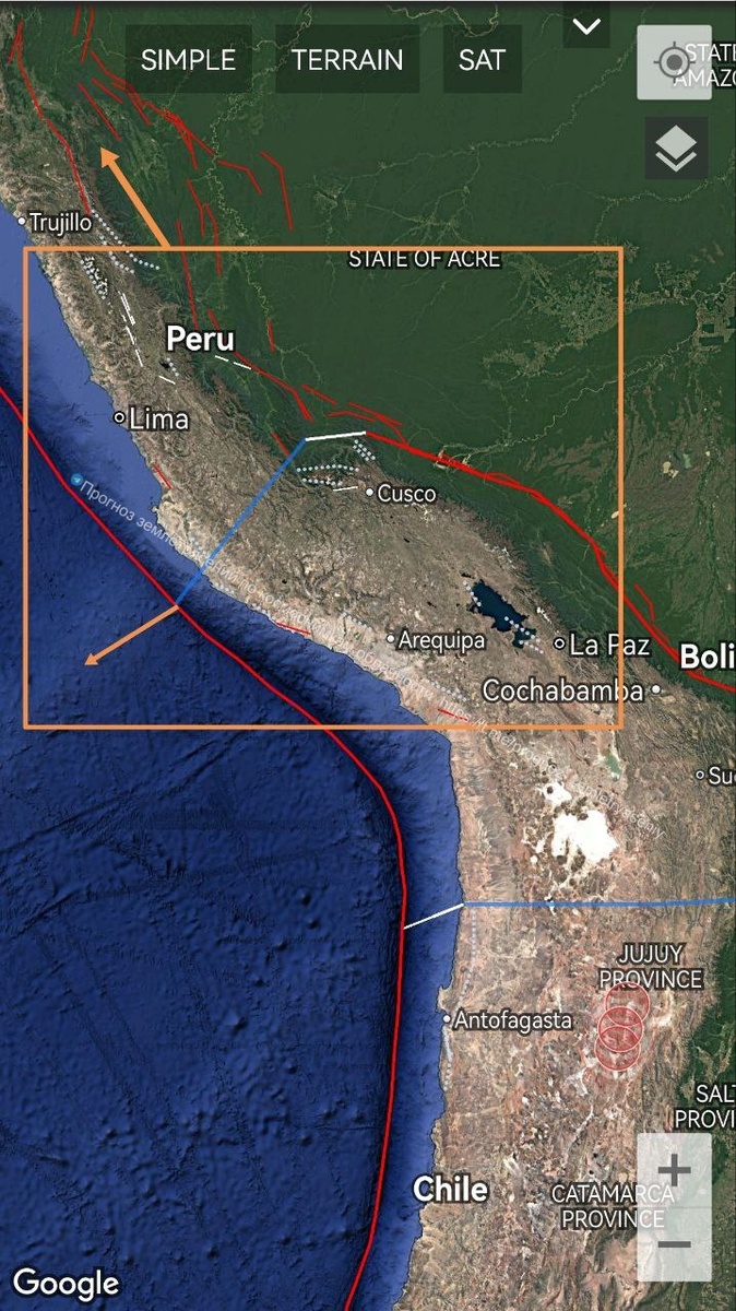 В Южной Америке подтверждается вероятность землетрясения М6-7 в районе Перу в течение 9 дней