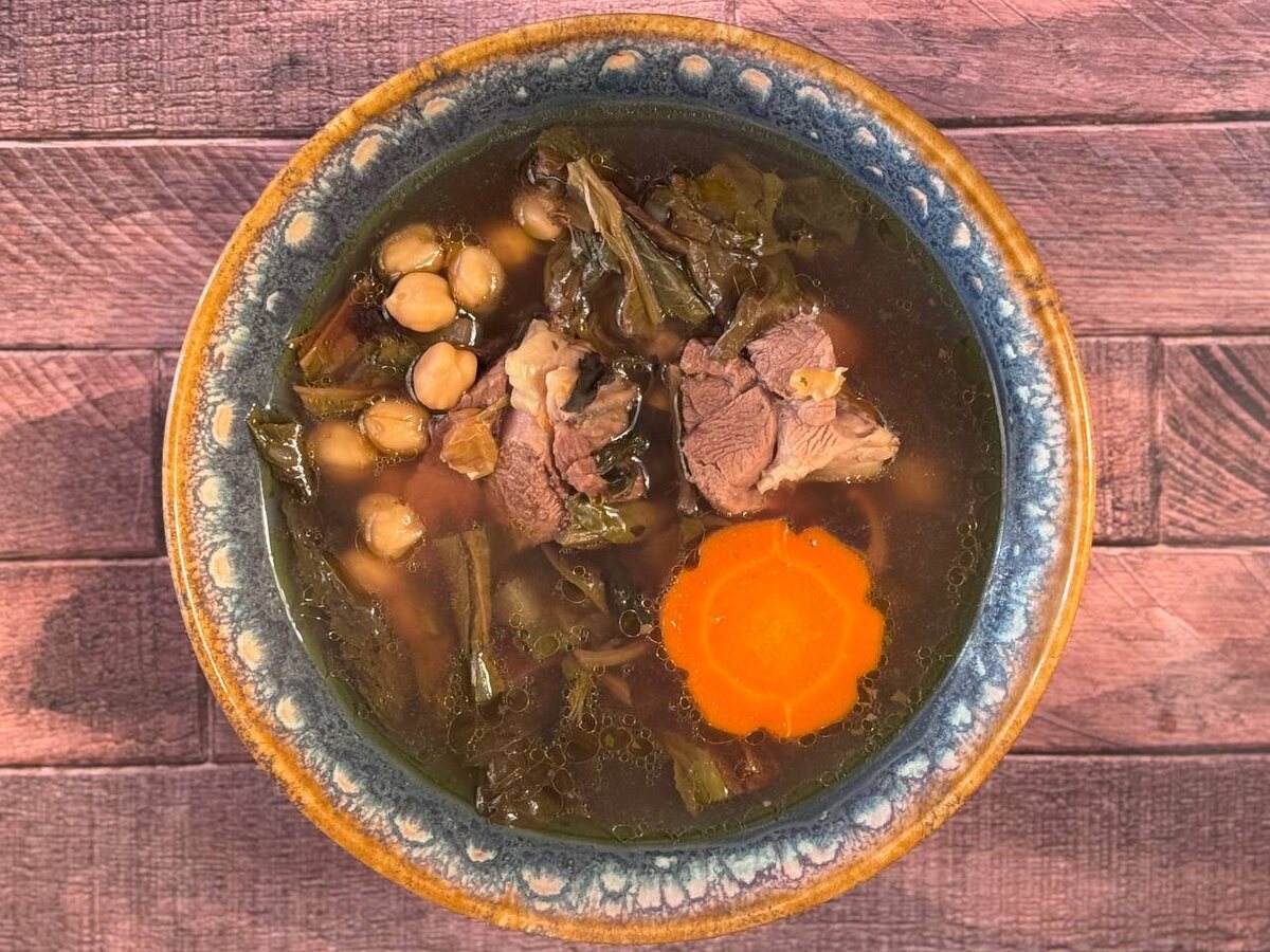 Вот, собственно, и рецепт на сегодняшний день. Прекрасный, сытный и согревающий суп. Авелук привезли мне из Армении и пробовал я его впервые. Мне понравился. Уверен, что и в пост этот продукт займёт достойное место на моём столе. Тем более, что он продаётся на всех электронных торговых площадках. Компоненты этого супа требуют небольшой предварительной подготовки. Нут нужно замочить на ночь, а Авелук дважды залить кипятком, минут по 15, а после отжать. Ингредиенты: 1️⃣ Баранья голяшка (можно взять и курицу, только не голени) - 1 шт (около килограмма) 2️⃣ Авелук (Конский Щавель) - 125 гр в сухом виде 3️⃣ Нут - 300 гр в сухом виде 4️⃣ Морковь - 1 крупная 5️⃣ Лук репчатый - 1 крупная луковица 6️⃣ Душистый перец - 4-5 горошин 7️⃣ Хлопья Чили - 1 ч.л 8️⃣ Вода - до 6 литров 9️⃣ Лимонный сок 1/2 лимона Неплохо подойдёт горсть каперсов с рассолом от них. Но это не обязательно. Приготовление: 1. Мясо промыть. Довести до кипения в небольшом количестве воды. Воду слить, а мясо ещё раз промыть