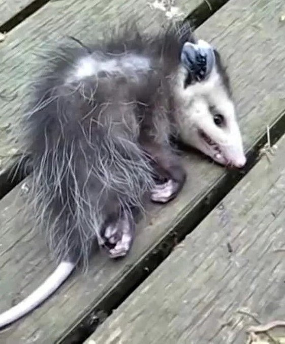 Роль центральной нервной системы в жизни опоссумов при взаимодействии с хищниками. В момент столкновения с хищником нервная система опоссума перегружается. Симпатическая нервная система, отвечающая за действие бей/беги, мгновенно сменяется тотальным доминированием парасимпатической системы. Это не решение, принятое корой головного мозга, а сигнал от примитивного ствола мозга - "отключаю, пусть все думают , что тебя нет". Опоссум впадает в состояние, близкое к тонической неподвижности (tonic immobility). Температура тела падает. Язык вываливается. Из желез выделяется зловонная жидкость. Физиологические показатели становятся почти неотличимы от трупа. Опоссум вводит хищника в обман отсутствием движения, тепла и зловонным запахом от тела. Хищник, запрограммированный находить жизнь сталкивается практически с "гниющим телом" и прекращает преследование (если он не строгий падальщик), тыкает, кусает, трясет. Опоссум не реагирует. Мозг хищника получает сигнал: «Объект не двигается → Объект не