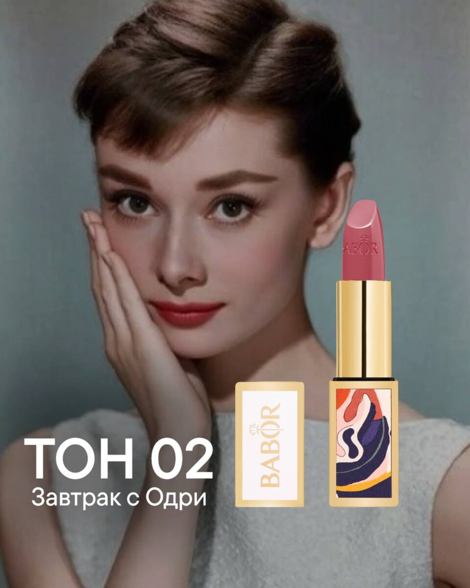 💋 Нежно-розовый оттенок в жизни усиливает естественный тон губ, создавая эффект свежести и ухоженности без явного акцента. Одри Хепбёрн вошла в историю не как символ броской красоты, а как воплощение интеллигентной женственности. Её стиль формировался не громкими жестами, а точными штрихами — осанкой, взглядом, едва заметным оттенком на губах. 💋В комментариях подробное видео с оттенком. Остальные тона уже представлены на сайте.