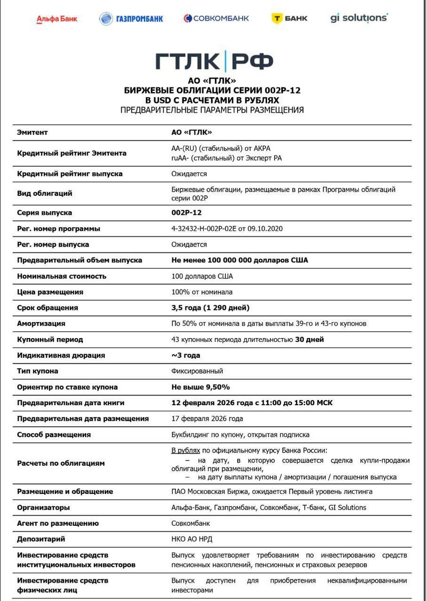 📣 Доброго дня! Сегодня биржа радует нас свежими выпусками: ⏰ Стартовали в 16:30 🪖 ПКО ЗАЩИТА ОНЛАЙН БО-02 ISIN - RU000A10E9M5 ➡️Рейтинг: B (НРА) 👑Только для квалифицированных инвесторов ➡️Купон: 26 % / YTM ≈ 29,3 % (30 дней) ⚠️Call-оферта через 2 года ⚠️Put-оферта через 15 месяцев ➡️Срок: 3 года Эмитент уже присутствует на рынке с единственным выпуском. В моем портфеле есть символические 16 шт. с купоном 26,5% - RU000A10DRV2 Вывод по выпуску: менять шило на мыло не стоит, если в портфеле уже имеется прошлый выпуск. Рейтинг низкий, но компания входит в топ 5 коллекторских агентств и фин показатели вполне приличные. 👉 Обзор на эмитента можно почитать здесь 👈 🗳 Кратко о других выпусках, которые тоже собирают заявки сегодня (ничего выдающегося): 🏭СФО АЛЬФА ФАБРИКА ПК-2 📊 Ожидаемый рейтинг: 🅰️🅰️🅰️.sf ➡️Ориентир купона: не выше 17 % (30 дней) ✅ Без оферт ⚠️ Амортизация с 01.05.2026 — на усмотрение эмитента ➡️Ожидаемый срок до погашения:: 1,8 года 👉 Торги стартуют 16 февра