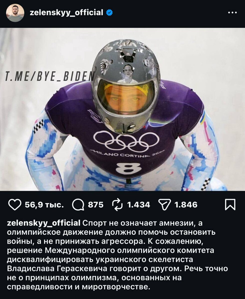 Зеленский наградил Гераскевича орденом Свободы Орденом Свободы на Украине награждают за особые заслуги. По задумке товарища с окраины, этот случай таким и является. «За самоотверженное служение украинскому народу, гражданское мужество и патриотизм в отстаивании идеалов свободы и демократических ценностей», — говорится в указе. Ранее в «нельзяграме» Зеленский заявил, что, оказывается, «олимпийское движение должно помочь остановить войны» и МОК не «соблюдает принципы олимпизма», дисквалифицировав украинского спортсмена. POV: МОК перестал выполнять твои хотелки. 👍 «БайБайден» в МАХ