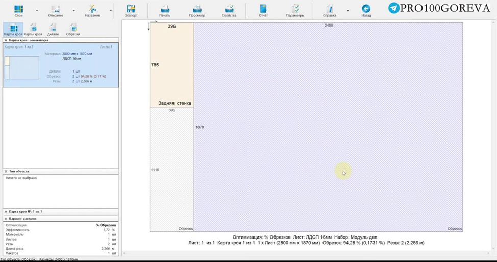 Как сделать карту раскроя в PRO100 на примере кухонного модуля