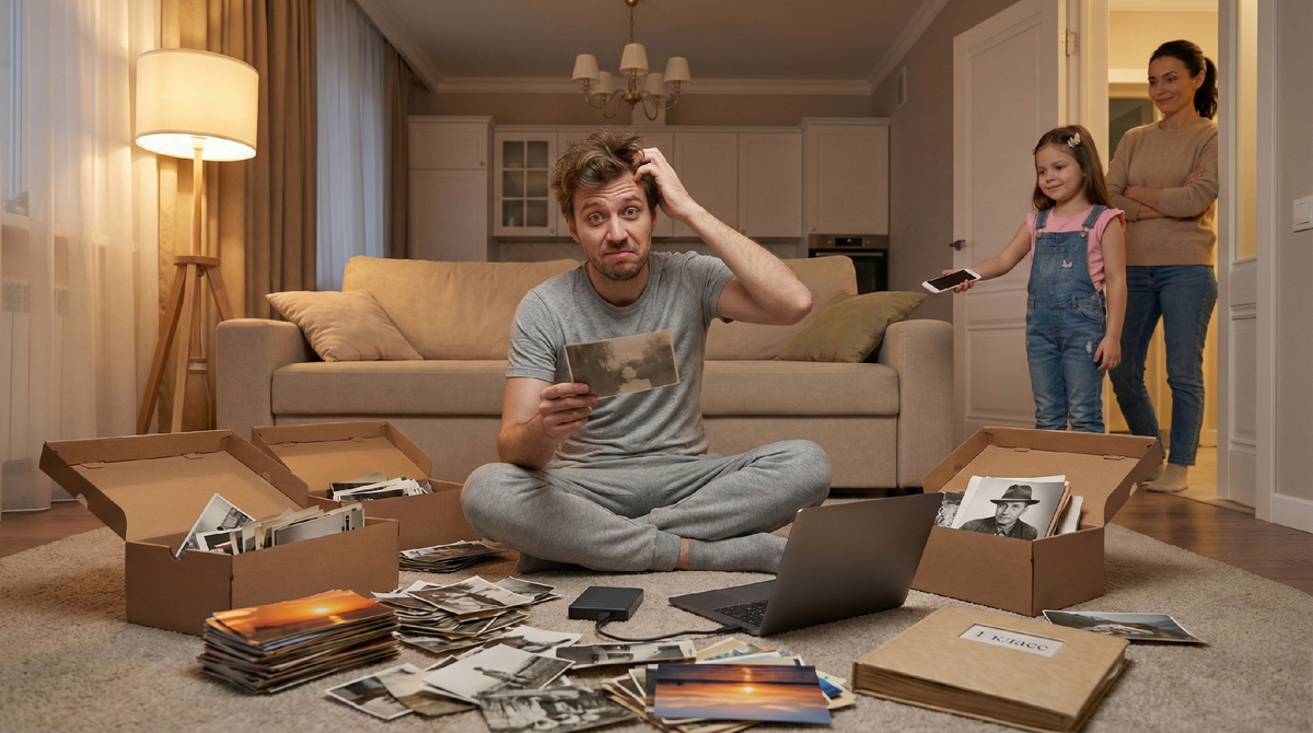 Я вот что скажу: мы не коллекционеры. Мы информационные Плюшкины. Помните «Мёртвые души»? Плюшкин тащил в дом всё подряд, складывал и не разбирал. Мы делаем ровно то же самое, только с гигабайтами. Раньше хотя бы плёнка дисциплинировала. Тридцать шесть кадров, каждый на счету. А сейчас? Щёлк-щёлк-щёлк, авось потом разберу. «Потом» не наступает никогда.