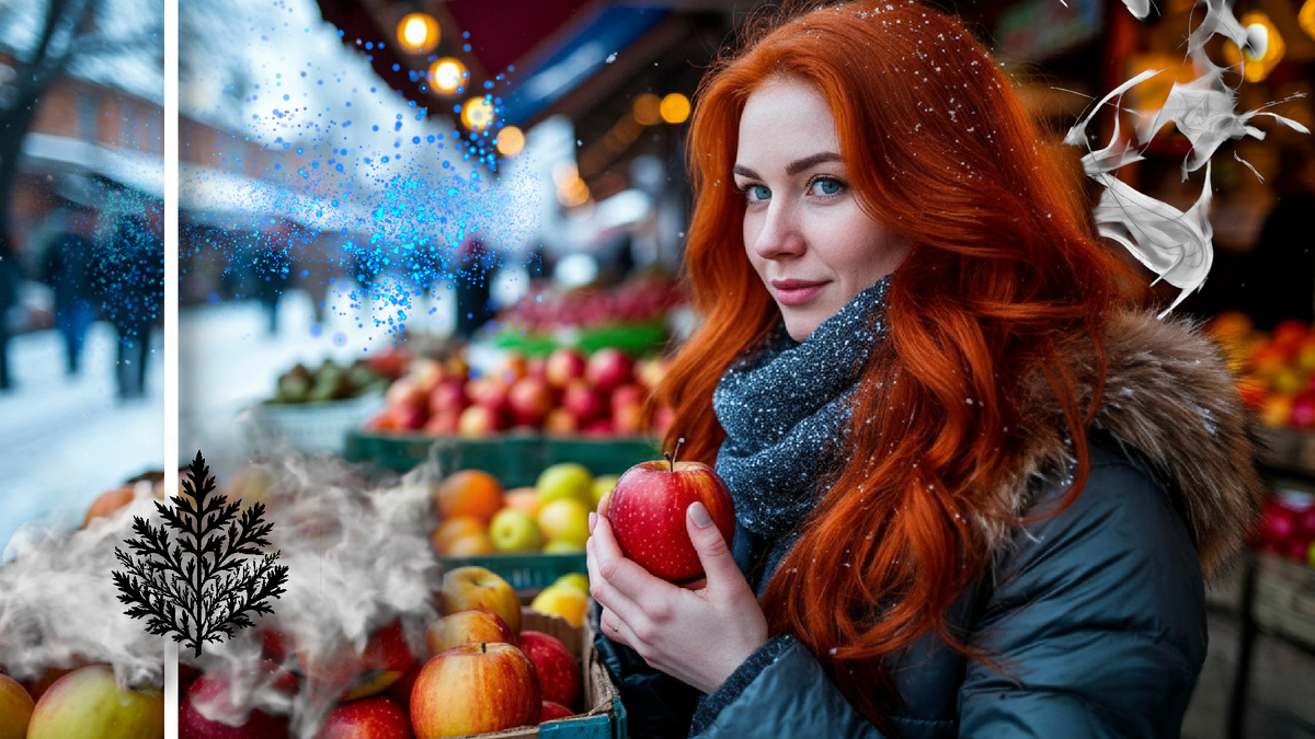 Посетители рынка начали оглядываться. Среди ящиков с яблоками, морковью и капустой стояла рыжая женщина с красными от начавшихся холодов руками и носом. По другую сторону прилавка гоготал высокий мужчина в длинном пальто чёрного цвета.