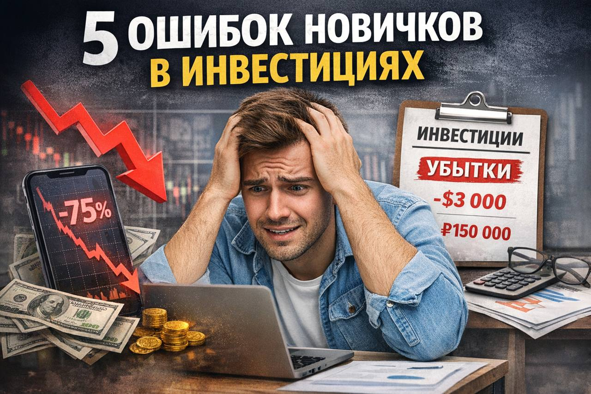 5 ошибок новичков в инвестициях, из-за которых люди теряют деньги Инвестиции сегодня на слуху у всех. В интернете обещают пассивный доход, финансовую свободу и жизнь без работы. Кажется, что стоит купить пару акций или криптовалюту — и деньги начнут капать сами. Но реальность суровее: большинство новичков в первые годы не зарабатывают, а теряют деньги. Причина почти всегда одна — типичные ошибки, которые совершают тысячи людей. Разберём 5 самых распространённых. Ошибка №1. Ожидание быстрых и лёгких денег Новички часто приходят в инвестиции с мыслью: «Сейчас вложу немного, а через год стану богатым». Реклама, блогеры и истории успеха создают иллюзию, что можно быстро разбогатеть. В итоге люди покупают рискованные активы, рассчитывая на x10 или x100. Проблема в том, что высокая доходность почти всегда связана с высоким риском. Рынок может упасть, а неопытный инвестор — запаниковать и продать в минус. Как правильно: Считайте инвестиции долгосрочным процессом. Хорошая доходность — 10–15% в