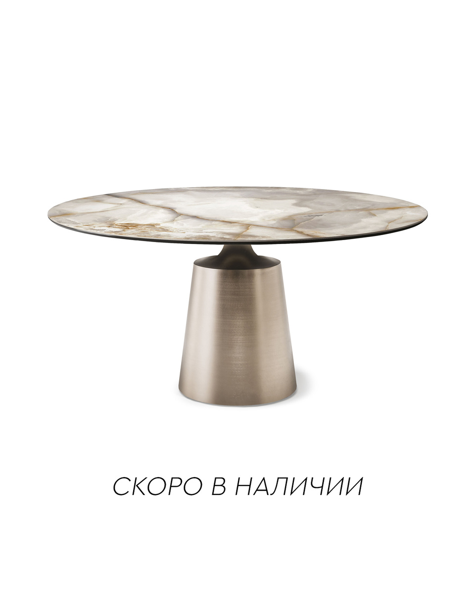 YODA Keramik от Cattelan Italia — стол уже в пути и совсем скоро займет свое место в нашем шоуруме. У нас будет модель диаметром 140 см — выразительная, но при этом универсальная по масштабу. Круглая столешница в керамике Borghini Calacatta Matt KM18 с мягкой матовой поверхностью передаёт рисунок благородного мрамора с тонкими серыми прожилками и глубиной натурального камня. Это спокойная, архитектурная интерпретация классического Calacatta — без излишнего блеска, с акцентом на текстуру. Основание Titanio Satinato. Оно выглядит цельным, монументальным, но при этом визуально лёгким благодаря выверенной геометрии. Уже совсем скоро его можно будет увидеть вживую, оценить масштаб, тактильность керамики и глубину отделки Titanio Satinato в нашем шоуруме на Барочной улице. Также этот стол доступен к бронированию.
