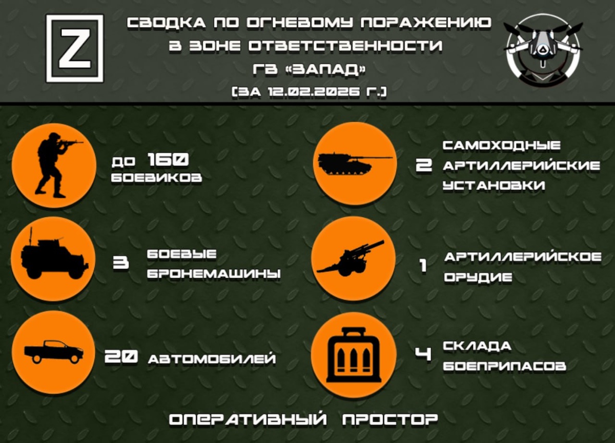 Сводка по огневому поражению в зоне ответственности ГВ «Запад» за 12.02.2026 г