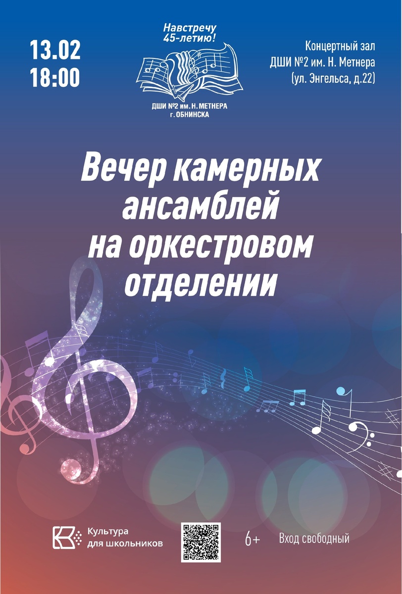 🎶13 февраля в 18:00 в ДШИ №2 им. Н. Метнера пройдёт вечер камерных ансамблей на оркестровом отдеоении.