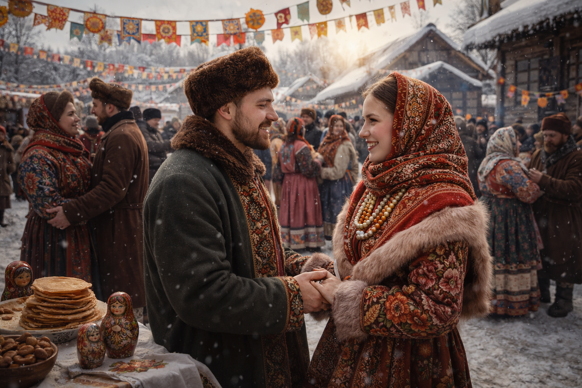 Раньше Масленица была неделе, когда решалась судьба молодых девушек. Пока на площади катались на санях и дрались стенка на стенку, родители присматривались к потенциальным зятьям и невесткам. Масленица считалась последним весёлым рубежом перед Великим постом, а значит – идеальным временем для сватовства. Никаких анкет, фотографий и свиданий в кафе. Всё проще, но одновременно и строже. Девушку оценивали буквально на глазах у всей деревни. По традиции после Рождества начинался свадебный сезон. Он длился до Масленицы. Великий пост считался временем покаяния, поэтому венчаний в это время не проводили. Если не успел договориться до Масленицы – жди до Красной горки, уже после Пасхи. На масленичных гуляньях молодёжь активно общалась. Катания с гор, хороводы, совместные игры – всё это было не только развлечением, но и возможностью приглядеться друг к другу. Парни приглашали девушек прокатиться на санях. Считалось, что если парень несколько раз катает одну и ту же девушку, значит, интерес серьё