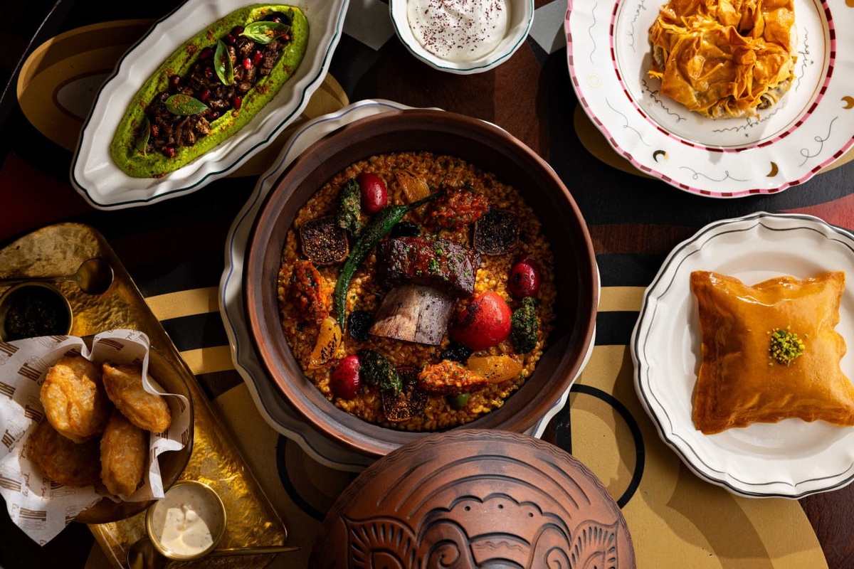 Табуле с кускусом, тажин с булгуром и говяжьим ребром, харрира с томленым козленком, пирожки-батбуты с телятиной, пирог бастилла с уткой и